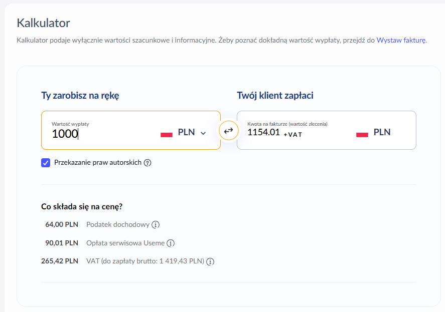 - Po drugie – Useme automatycznie odprowadza za Ciebie podatki, zapewniając legalność rozliczeń.